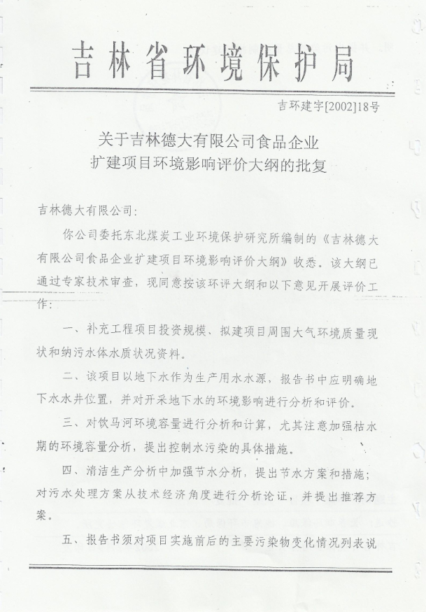 吉林德大有限公司環評文件